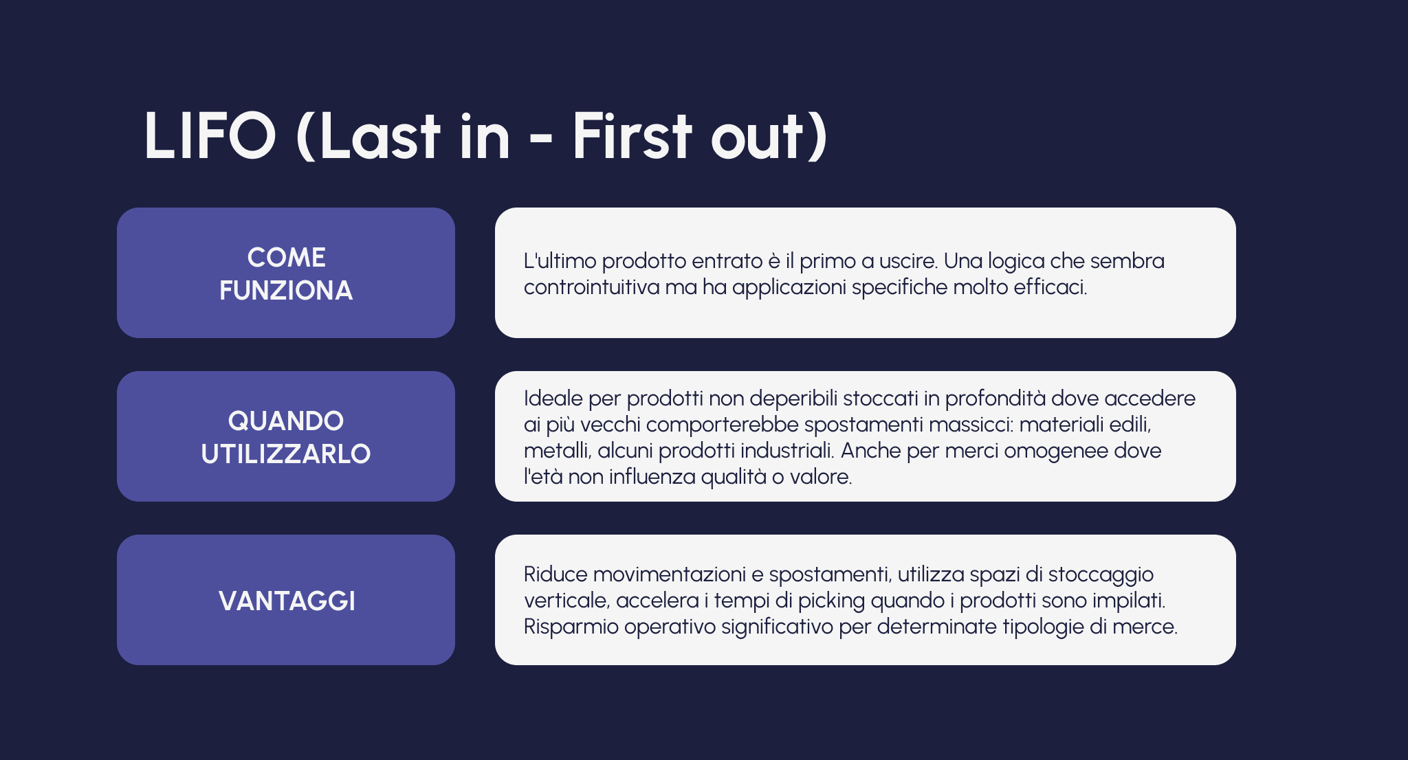Logiche FIFO, LIFO, FEFO
